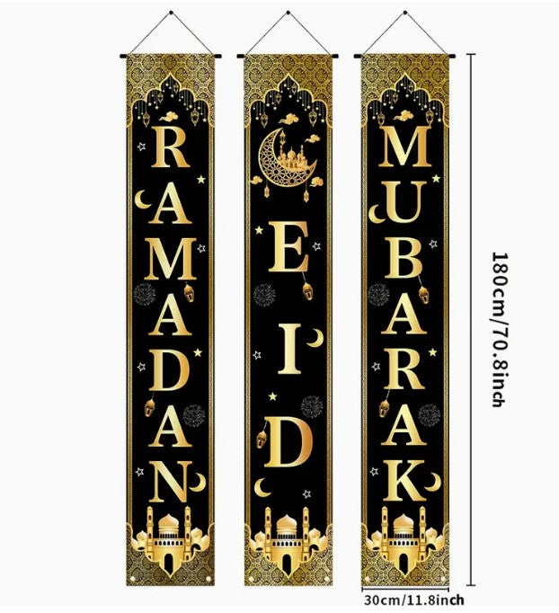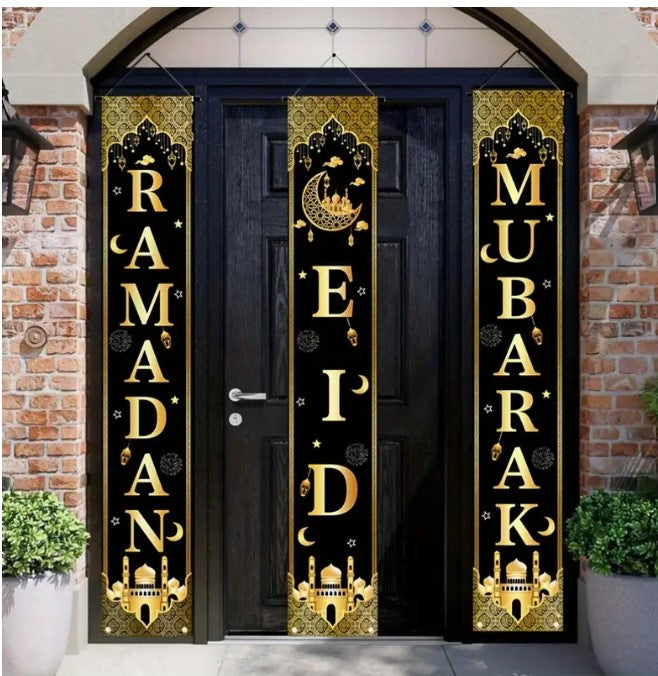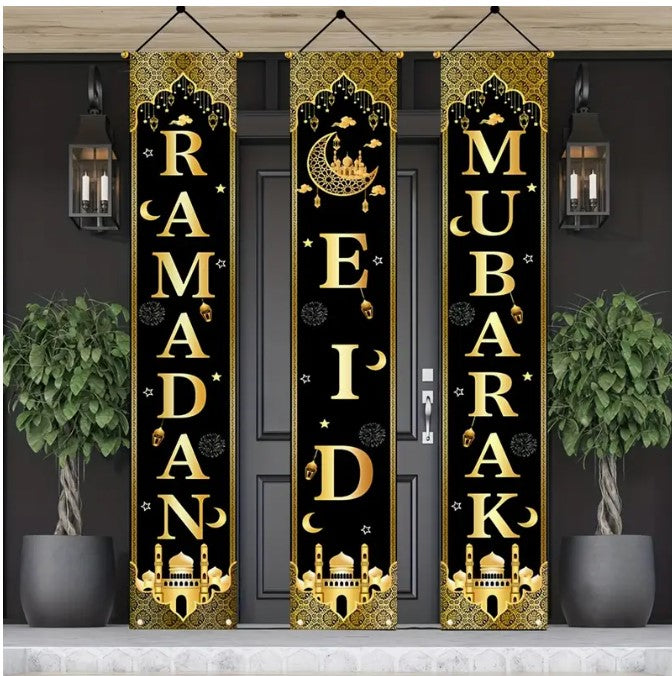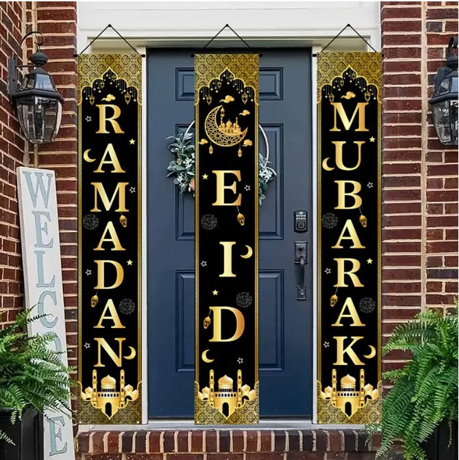 2D Door Banner 3pcs Eid Mubarak Door Banners Set