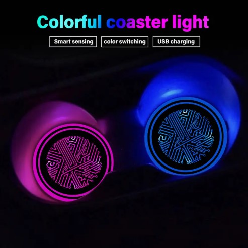 Illuminate your car's interior with our 2PCS LED car cup holder lights, featuring 7 color options to match any mood. These waterproof cup pads are charged via USB, making them not only stylish but also practical. Perfect for gifts, adding a touch of modernity to any car.