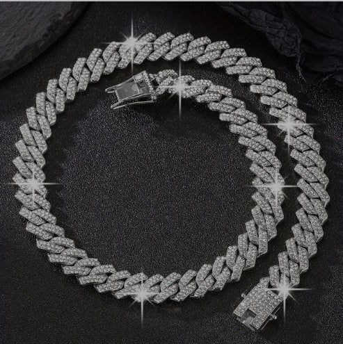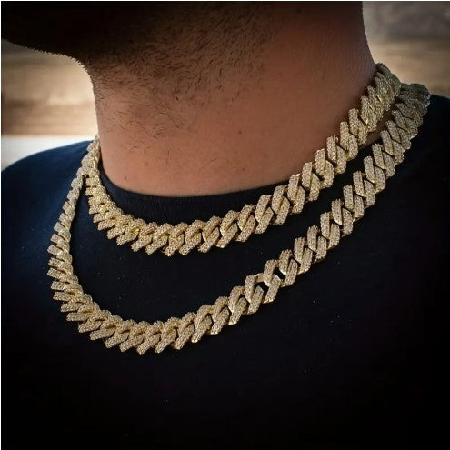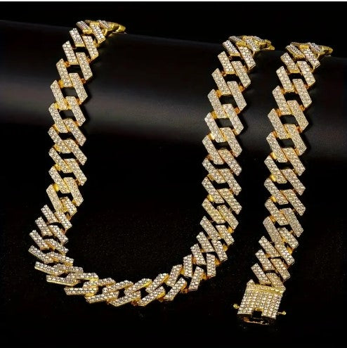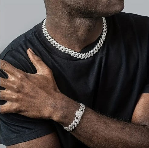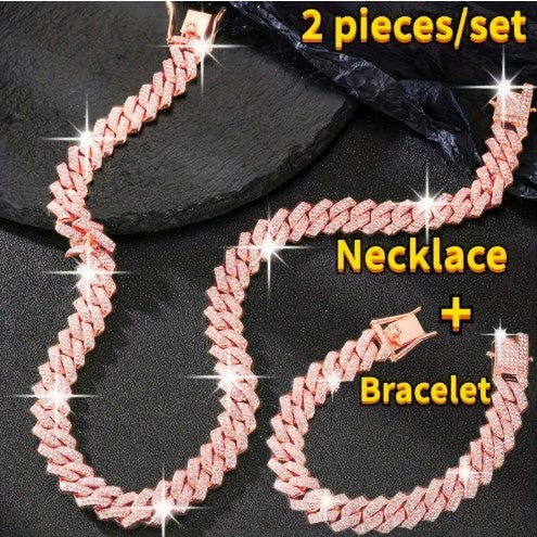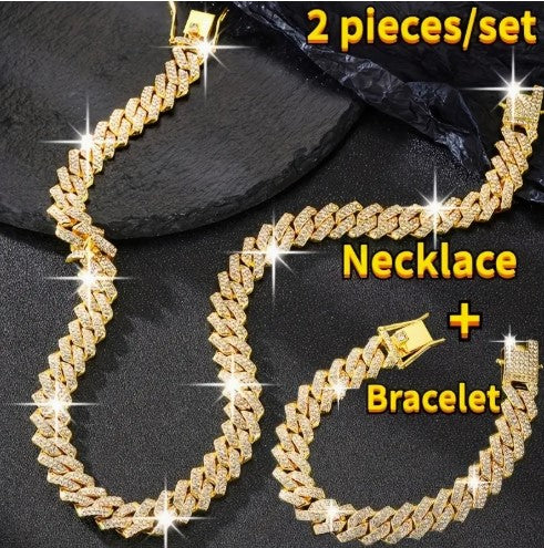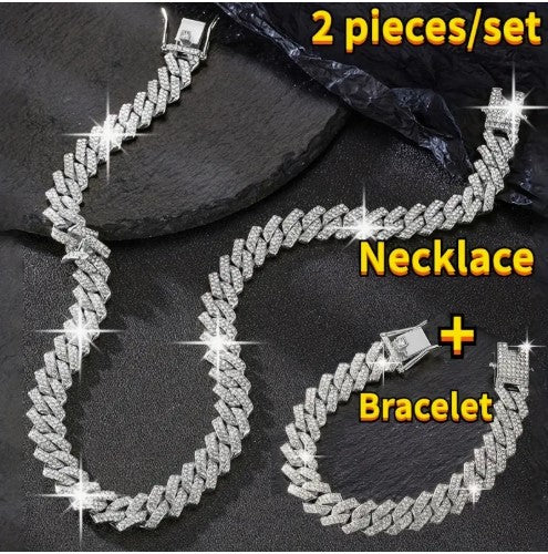 2pcs Shiny Cuban Link Chain for Men Necklace Set Plus Bracelet Set