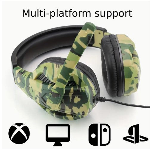 Experience immersive sound and crystal-clear mic with our 3.5mm E-Sports Double-Sided Camouflage Gaming Headset. Perfect for PC gaming, mobile use, and online classes with its line control and direct connection. Its durable military green design ensures long-lasting use. Elevate your gaming and audio experience now.