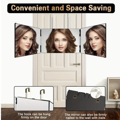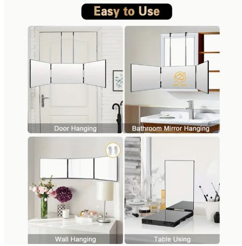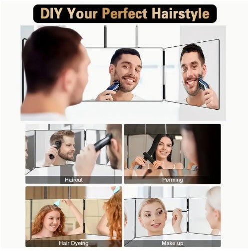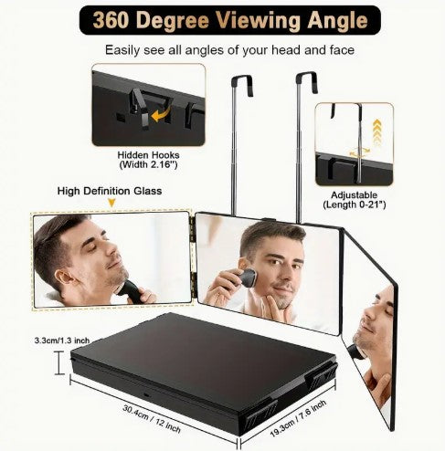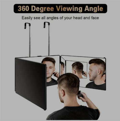 360-Degree Viewing Angle Hair Cutting Mirror, 3-Way Self Haircut Mirror with Clear Anti-Fog HD Glass.