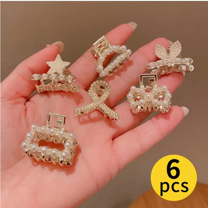 Introducing the 6pcs Elegant Pearl Rhinestone Hair Clip Set. Add a touch of elegance to your hairstyle with these fashionable hair grippers adorned with pearls and rhinestones. Keep your hair in place while looking stylish. A must-have for any fashion-forward individual.
