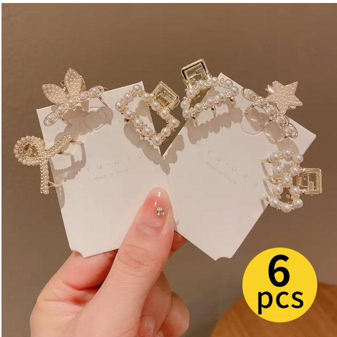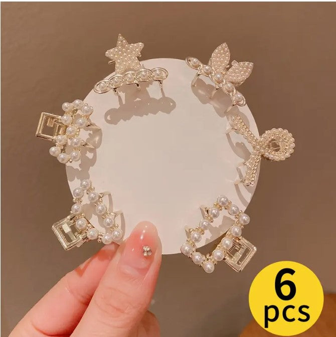 6pcs Elegant Pearl Rhinestone Hair Clip Fashionable Hair Gripper Cute Hairpin