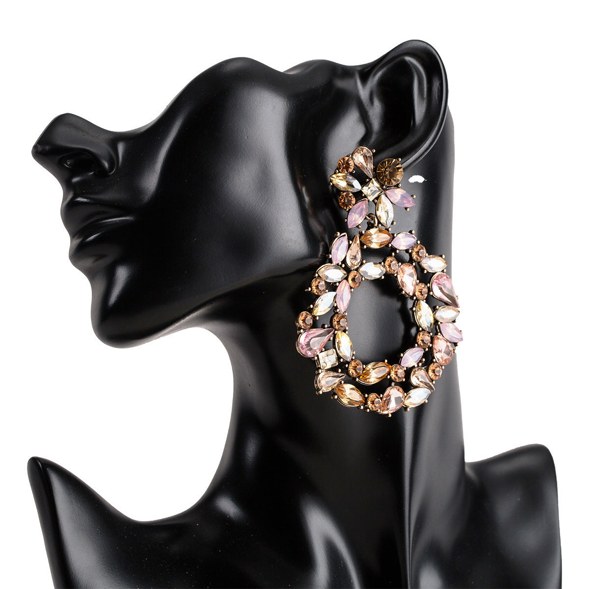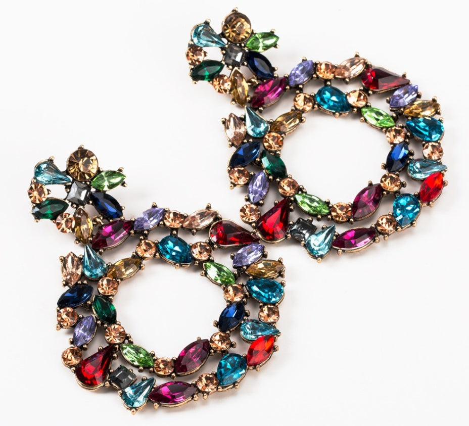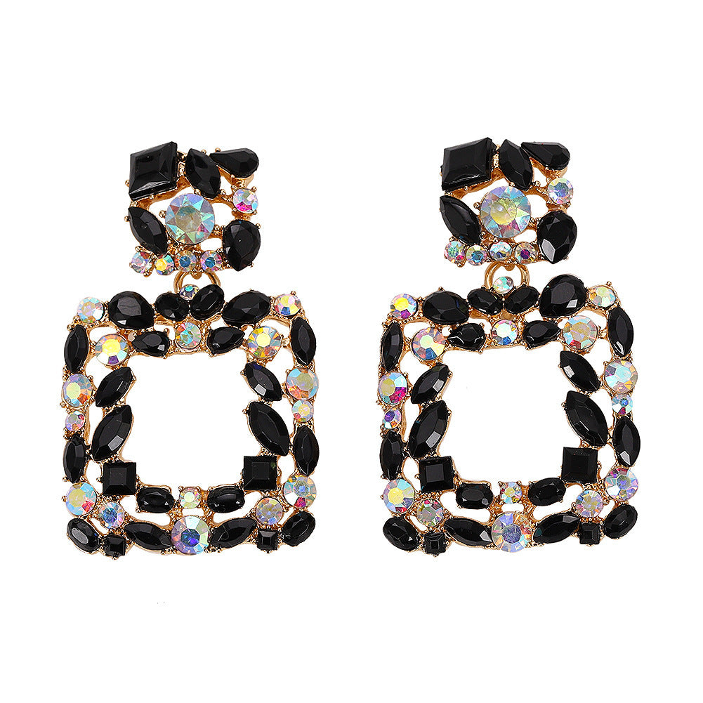 Creative Exaggerated Mixed Color Glass Diamond Retro Tassel Earrings