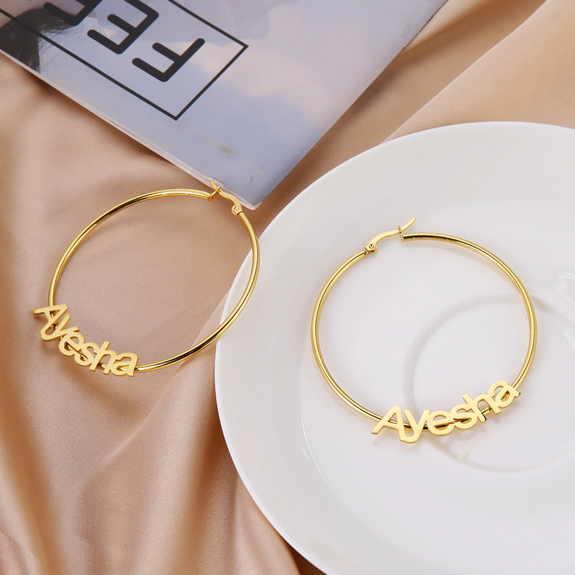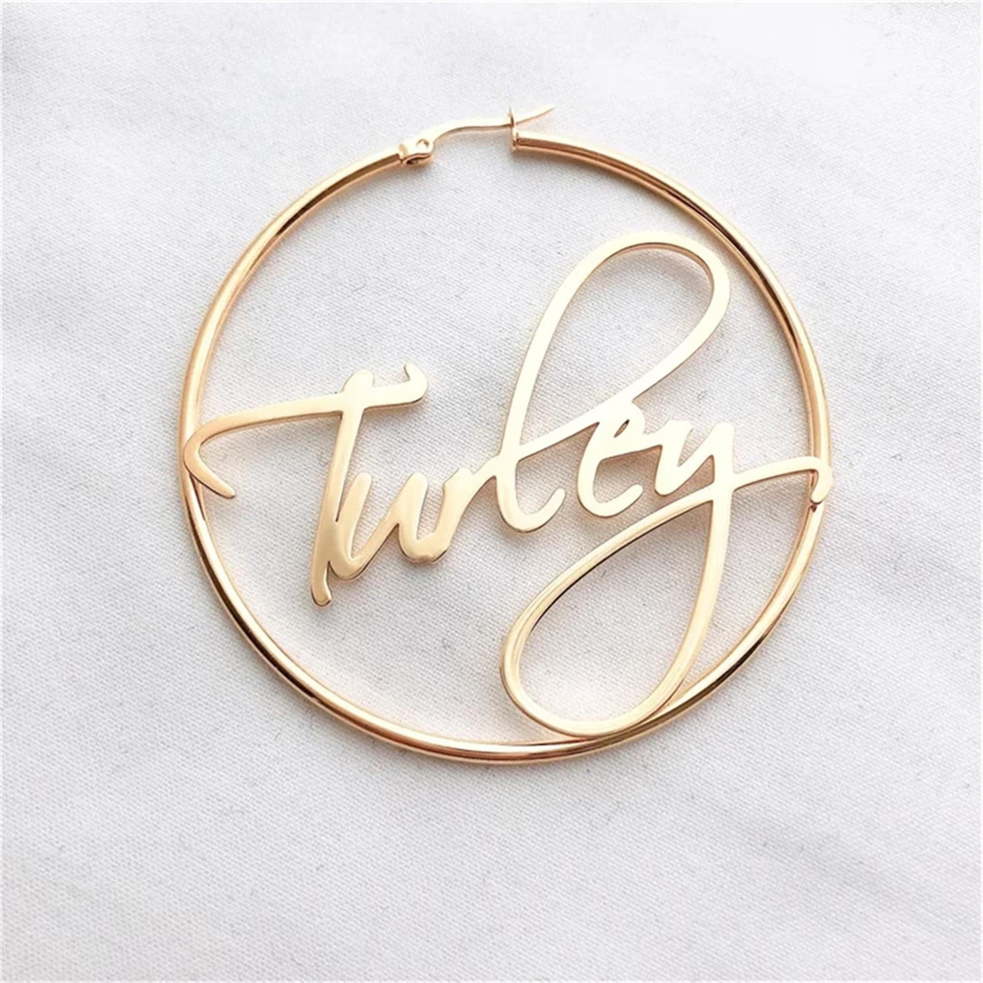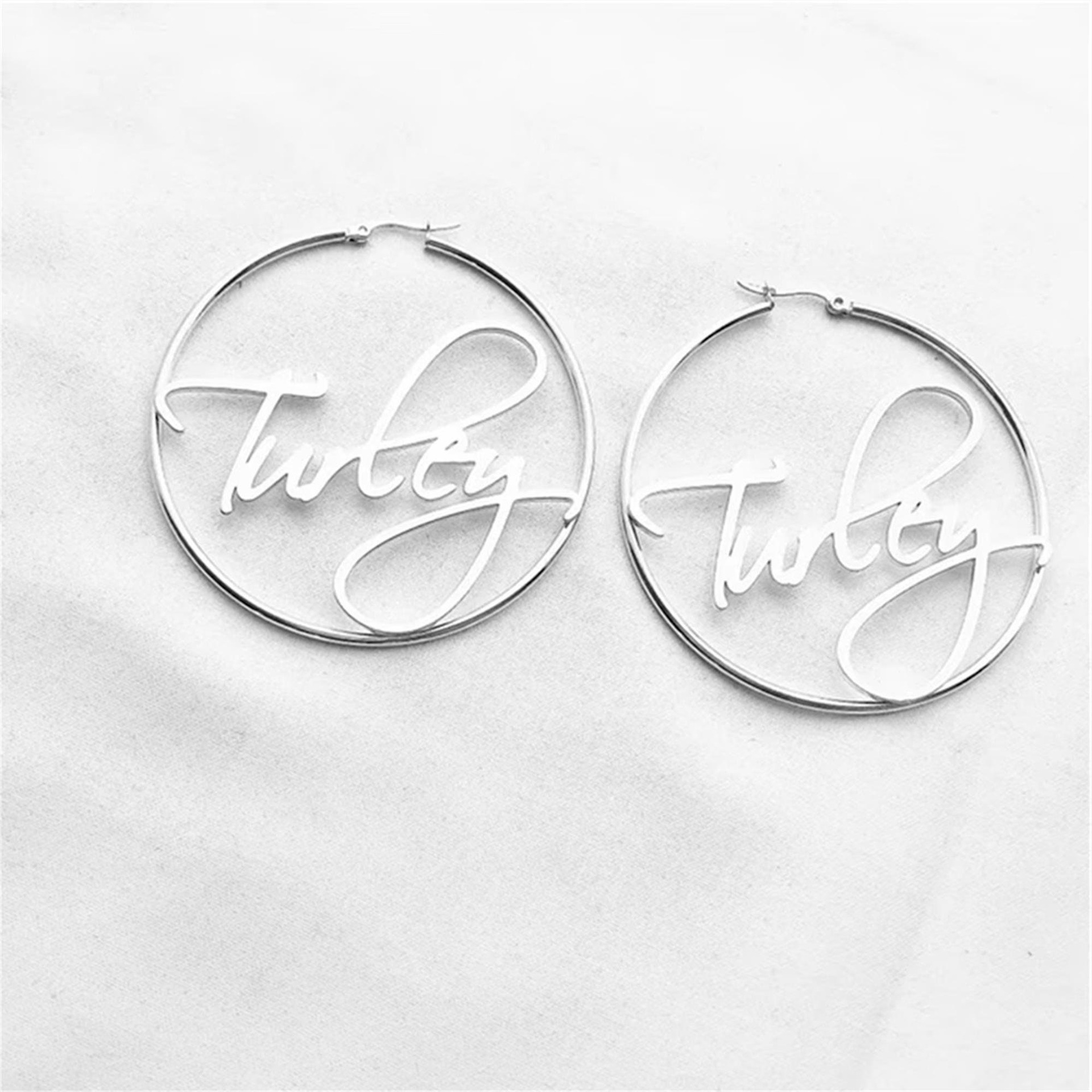 English Letter Curved Needle Ear Ring Stainless Steel Name Personalized Creative