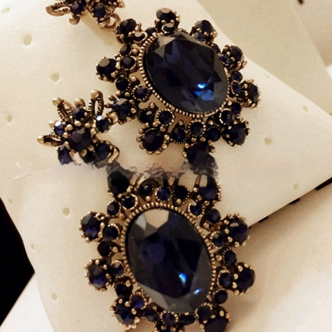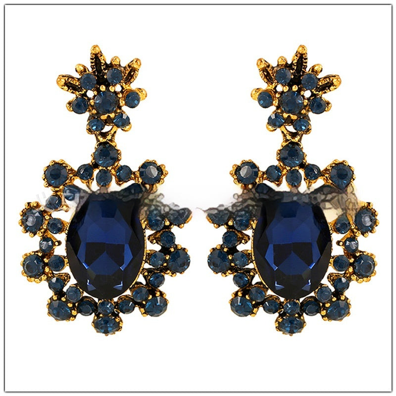 European And American Fashion Cool Vintage Sapphire Stud Earrings